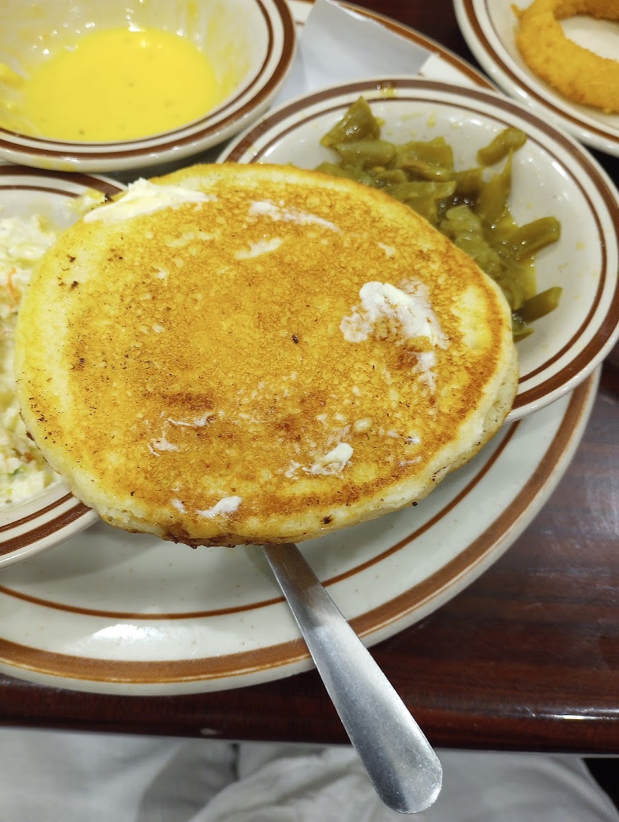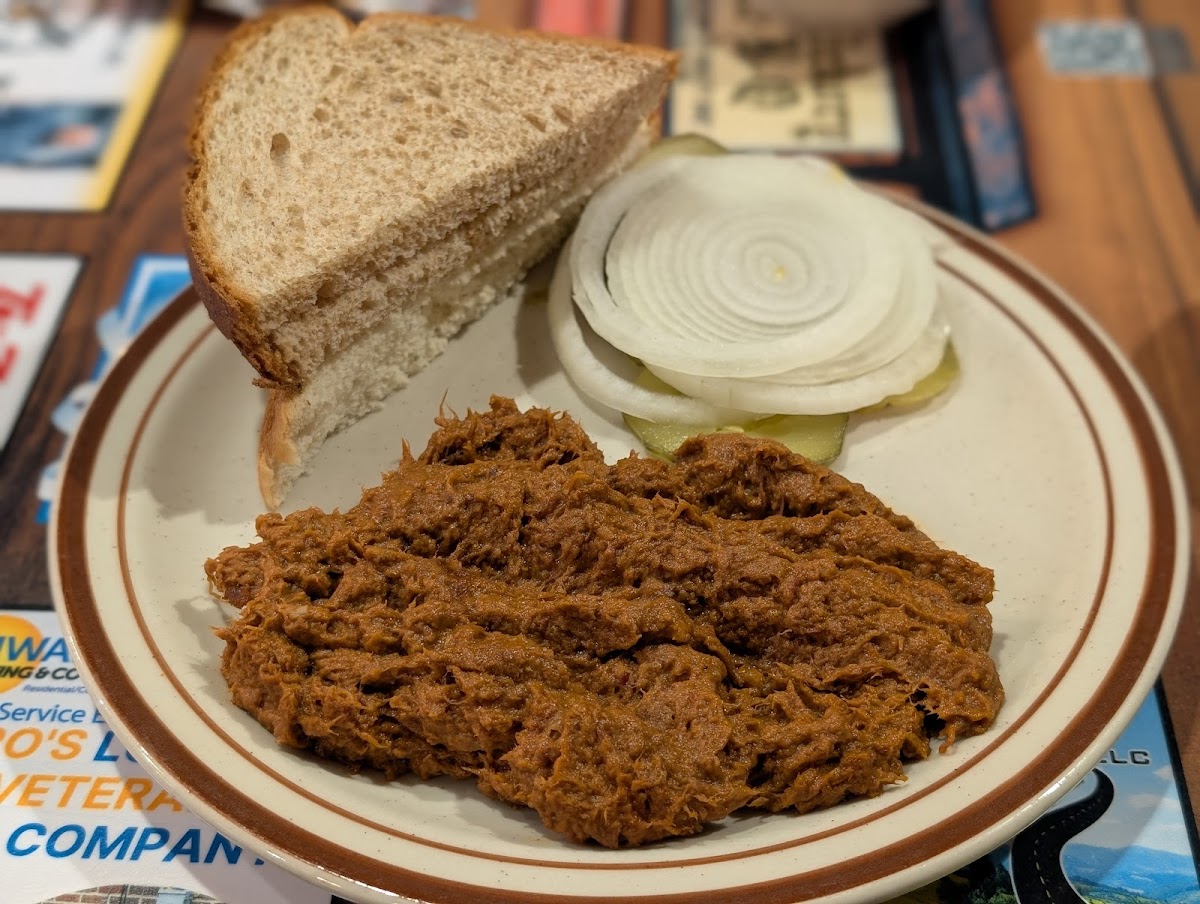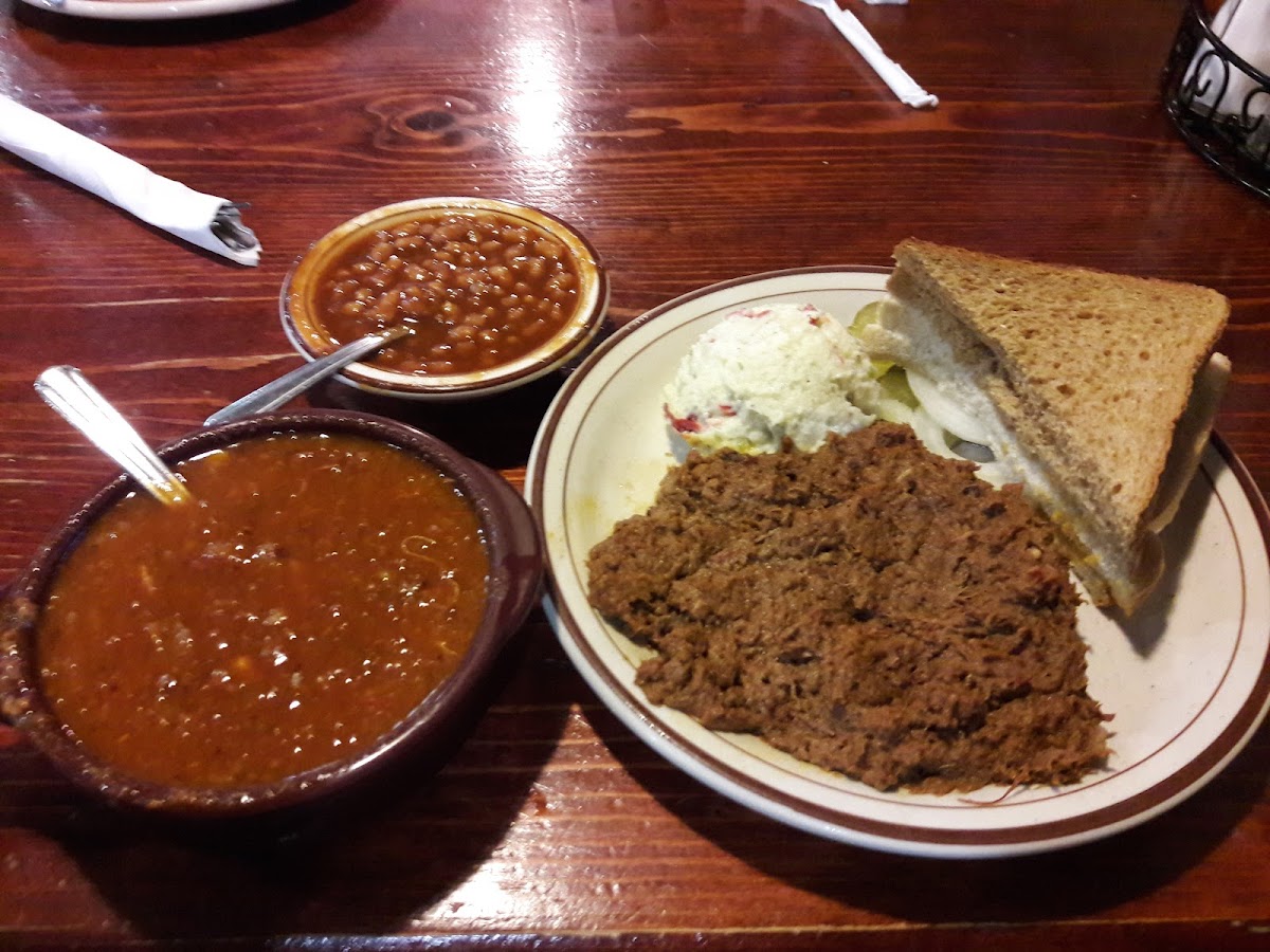 We had dined a little late because the ribs and beef brisket were sold out!! I got the smoked turkey with mashed potatoes, baked beans & cornbread. My friend got smoked ham with same two sides with cornbread. Both of us had sweet Tea & dessert . (Will go back and try the smoked brisket another day). Restaurant was clean, the waitress was very polite and knowledgeable. The food was delicious.